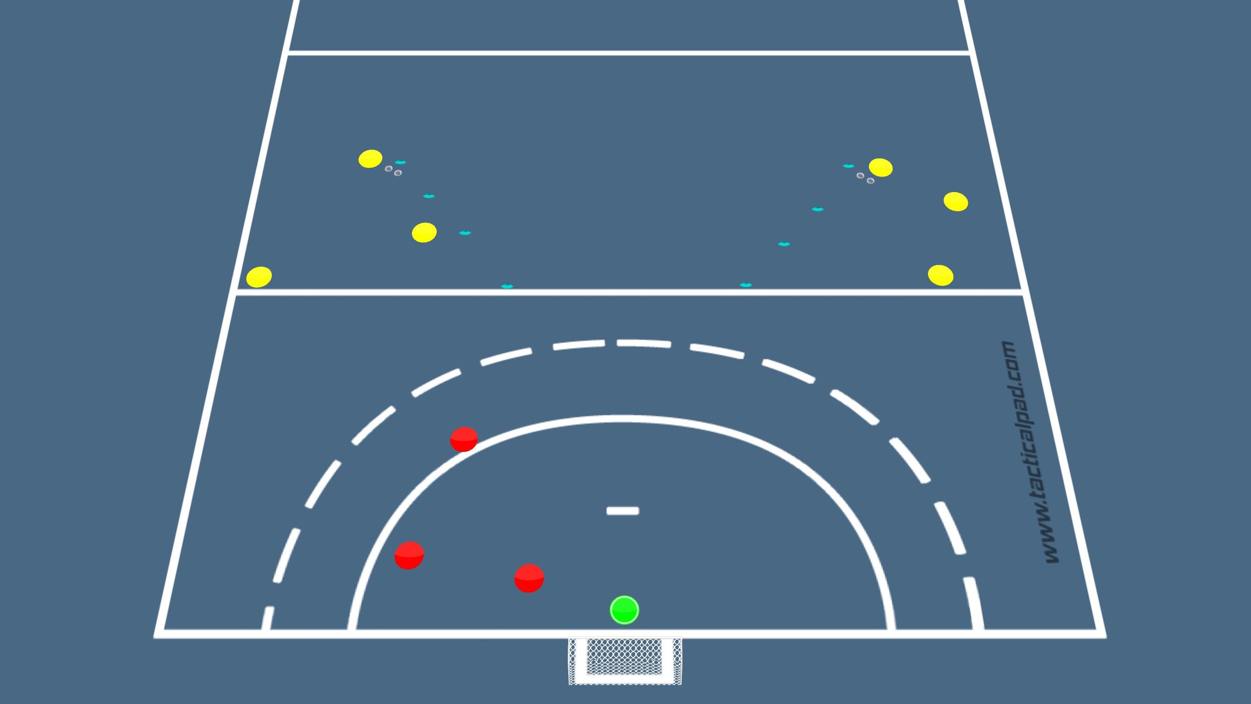 All attacking players must start outside the 23m line and 2 defenders within the circle and 1 inside the 5m line.